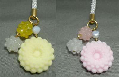 菊と金平糖の根付け(ピンク、黄色)