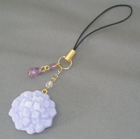 紫陽花とシュガービーズのストラップ