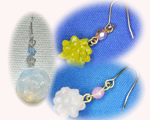 金平糖はどちらもチェコビーズと組み合わせているのですが、ピンクはオパールピンクというあまり透けていないビーズなのが甘くて可愛いです。